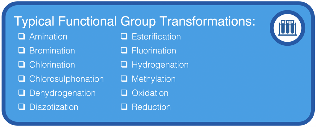 Our areas of expertise consist of process chemistry, analytical and EHS. Each reaction step is first scaled in our kilo-labs and all results incorporated into the technical package which details synthetic challenges and any recommended improvements to the process.